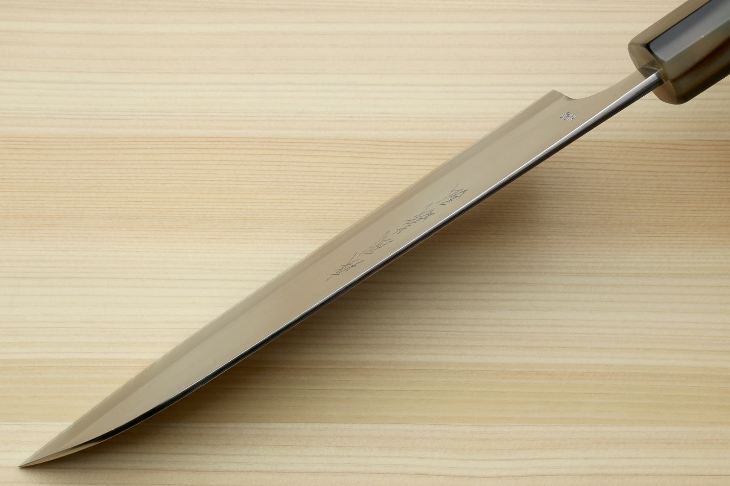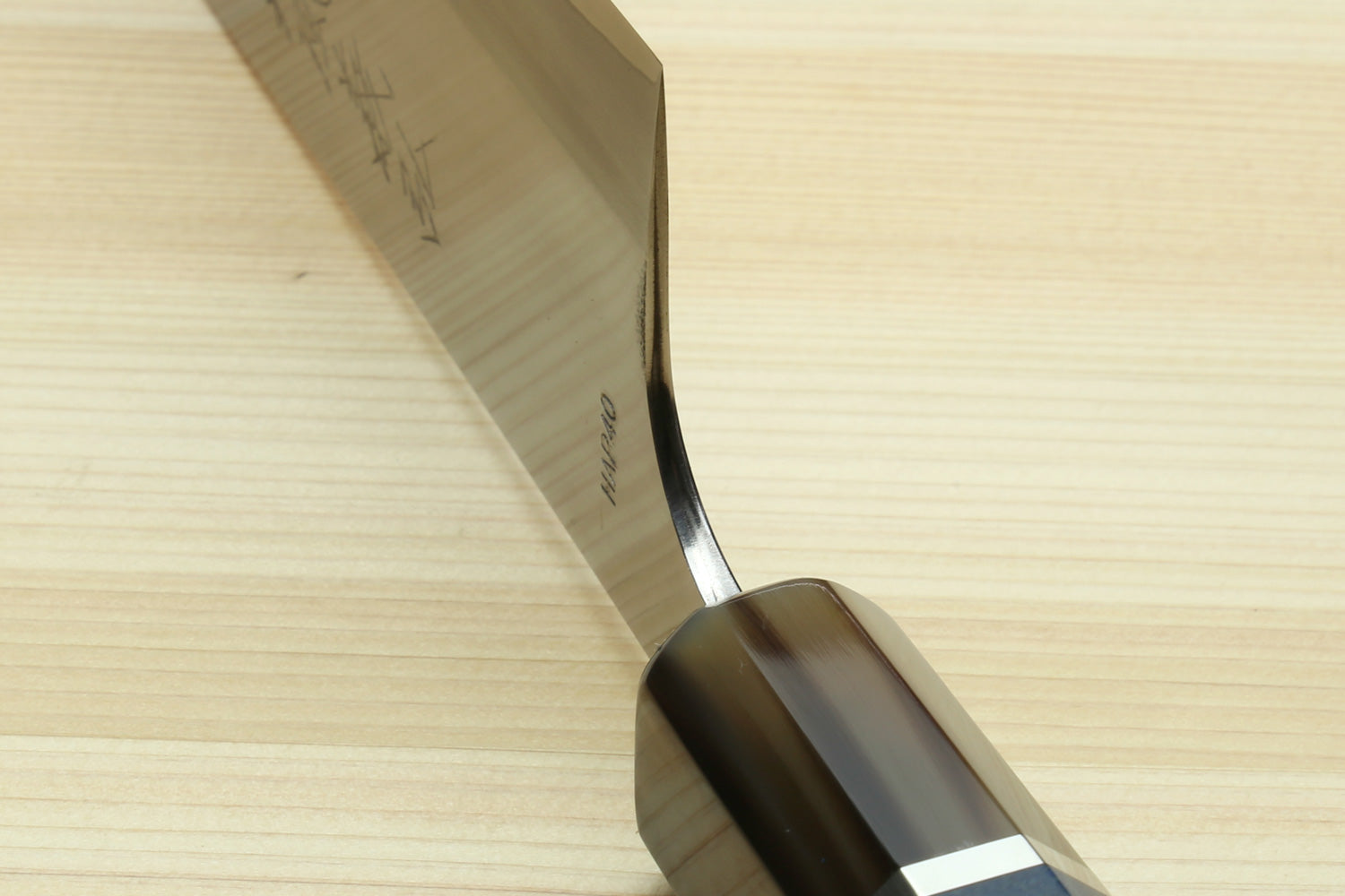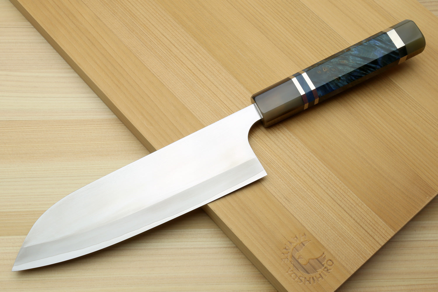 Our Yoshihiro HAP40 High Speed Stainless Steel Santoku is a state-of-the-art handcrafted Japanese chef's knife that redefines cutting performance. HAP40 (Funmatsu Haisu) stainless steel has the potential to set a new standard in the stainless steel knife market, maximizing both cutting efficiency and edge retention like few others.