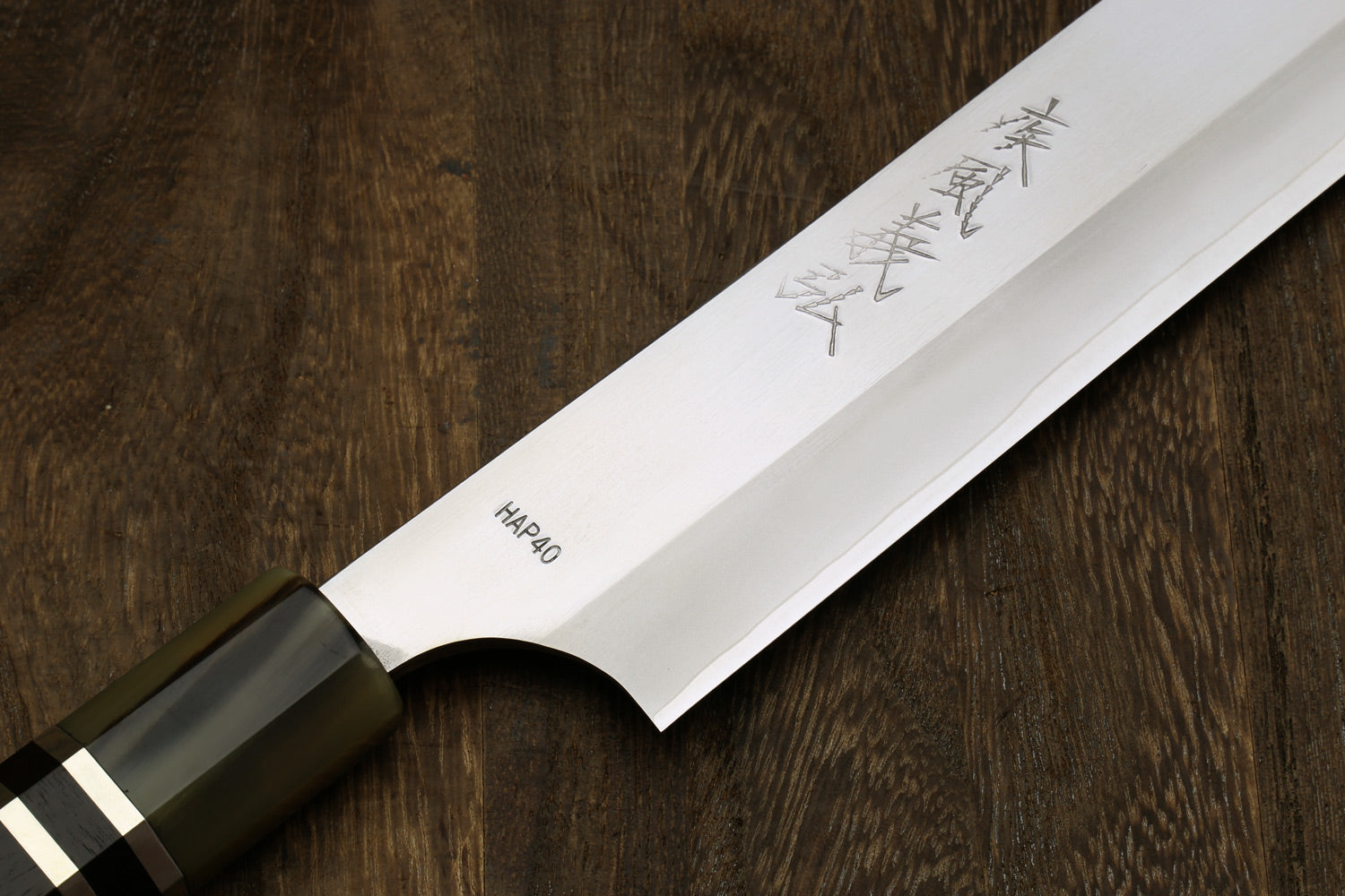 HAP40, developed by Hitachi, is highly sought after for its exceptional cutting ability, edge stability, and long-lasting sharpness. While extremely hard, it is easier to sharpen than ZDP-189 due to its lower chromium content. Its hardness delivers outstanding wear resistance and edge retention, though the lower chromium also means it can tarnish more easily if not cared for.