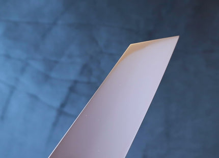 Our Yoshihiro High Speed Steel Kiritsuke is a state-of-the-art handcrafted Japanese chef's knife that masterfully combines exceptional sharpness, long-lasting edge retention, stain resistance, and ease of sharpening. Its outstanding performance is the result of blending cutting-edge metallurgy with the rich expertise of skilled craftsmen, creating a knife that surpasses many others on the market. High Speed Steel is currently regarded as the most advanced stainless steel used in high-end kitchen knives. Its composition, featuring a high concentration of carbon (1.3%) and tungsten (1.25%), provides remarkable wear resistance and durability, qualities that make it ideal for its original use in industrial machinery. These same properties translate to kitchen knives, making them perfect for extended periods of use without losing their sharp edge. Forging kitchen knives from High Speed Steel is a challenging process, and few manufacturers attempt it due to the complexity involved, particularly during heat treatment, where temperatures exceed 1000 degrees Celsius. However, when successfully crafted, the results are nothing short of extraordinary, producing a knife that is both highly durable and incredibly sharp, suitable for demanding tasks in any kitchen.