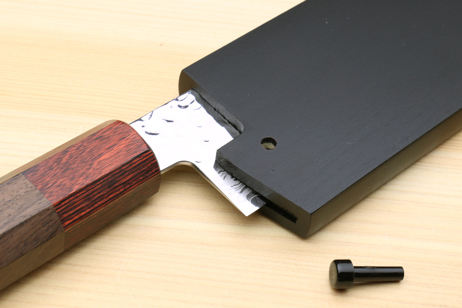 For added safety, a peg is incorporated to securely keep the blade and sheath in place, giving you peace of mind when storing your cherished knives. To maintain the integrity of your knife, we recommend drying it thoroughly before placing it into the saya, ensuring a snug fit that protects your blade.
