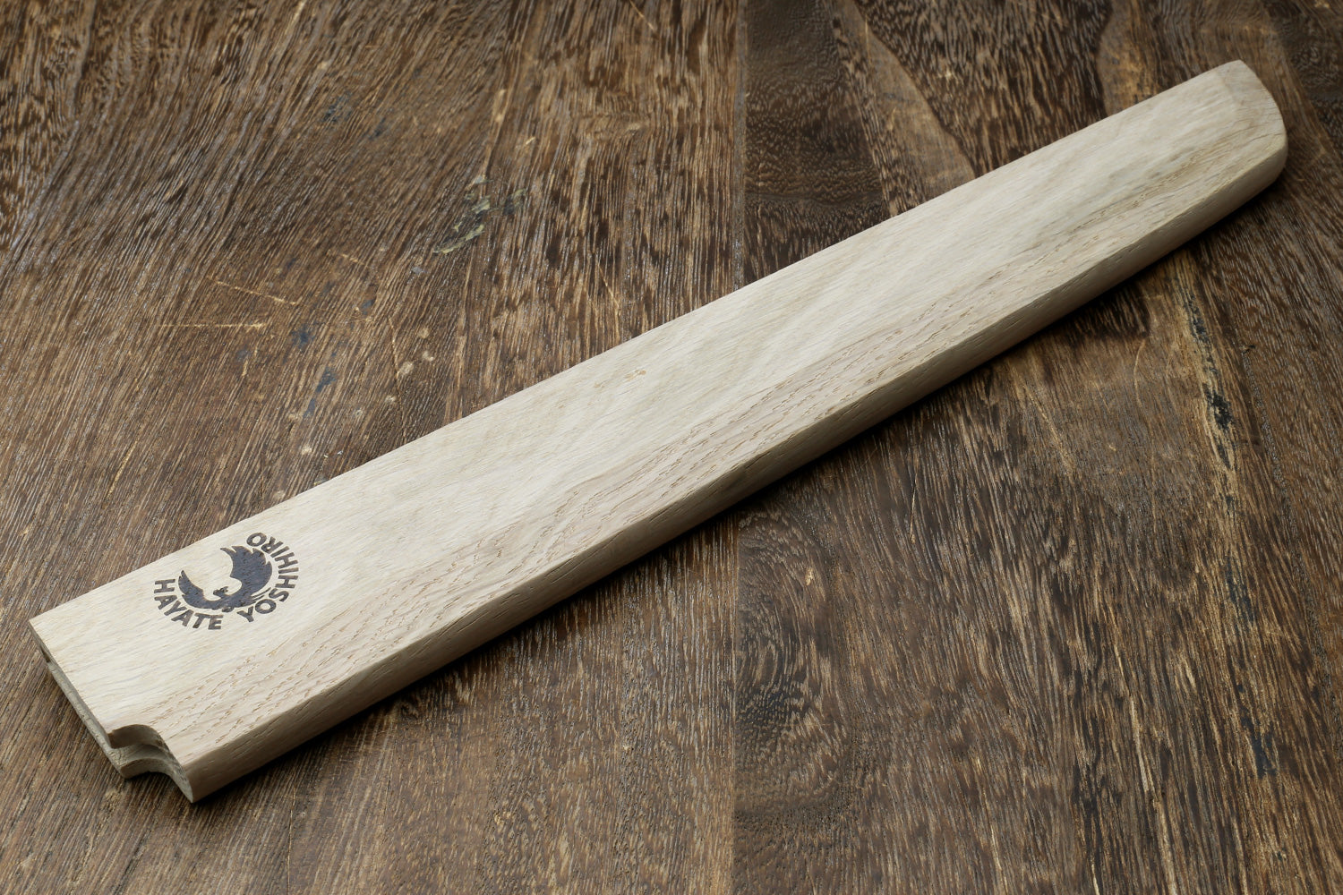 Now upgraded to premium American Oak wood, this saya cover is a refined evolution of our previous magnolia design for both traditional and Western-style knives. Oak is significantly harder and more durable than magnolia, offering improved resistance to dents, scratches, and staining while providing a richer, more refined appearance. The dense hardwood construction enhances overall quality and longevity while remaining suitable for protecting carbon steel blades.
