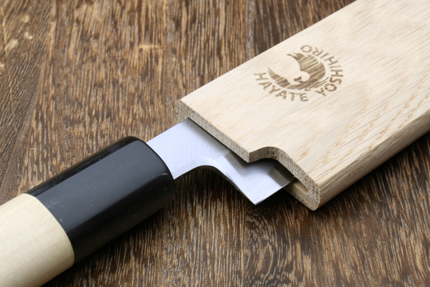 Now upgraded to premium American Oak wood, this saya cover is a refined evolution of our previous magnolia design for both traditional and Western-style knives. Oak is significantly harder and more durable than magnolia, offering improved resistance to dents, scratches, and staining while providing a richer, more refined appearance. The dense hardwood construction enhances overall quality and longevity while remaining suitable for protecting carbon steel blades.