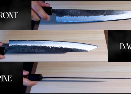This series is meticulously crafted by our master artisans, reflecting a commitment to high quality and exceptional value. Made from White Steel #2, with a Rockwell hardness rating of 63, each blade is intricately forged with iron to achieve a stunning Black-Forged Nashiji finish. This unique carbonized coating, created during heat treatment, enhances the blade's rustic aesthetic and contributes to its performance.