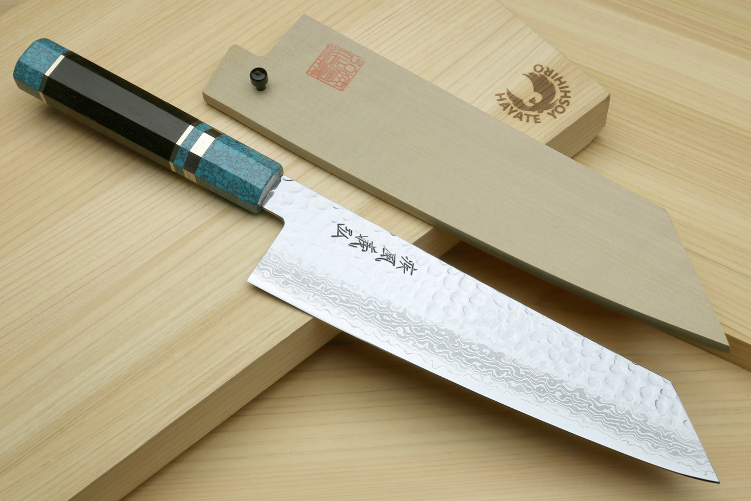With its combination of refined craftsmanship and practical performance, the Yoshihiro VG-10 Hammered Damascus Kiritsuke is more than a knife—it’s a statement of artistry and quality.